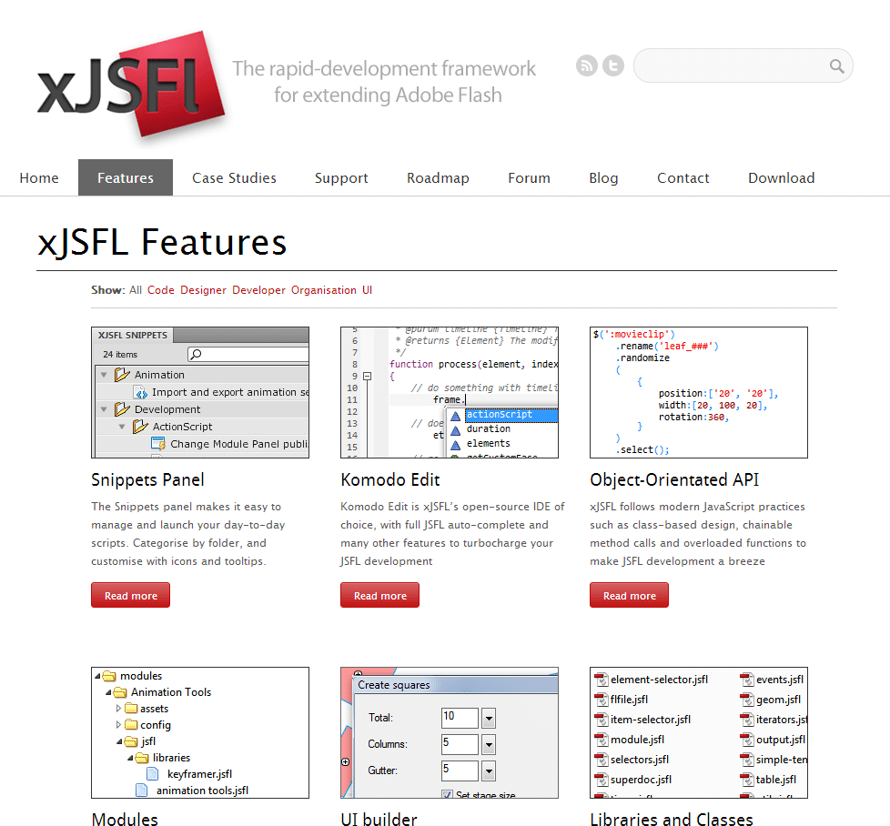 xJSFL has been designed from the bottom up to replace laborious syntax, and abstract repetitive tasks into elegant one-liners.