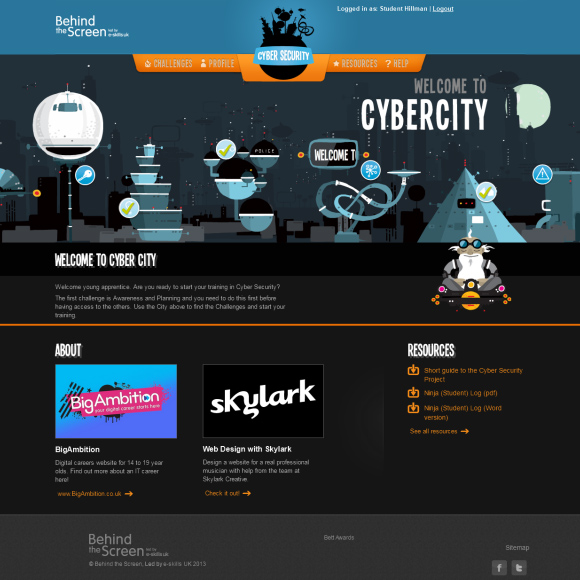 I worked closely with Skylark Creative from the very beginning of the project to brainstorm a suitable vehicle to take students through 7 "Cyber Challenges".