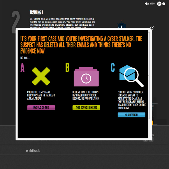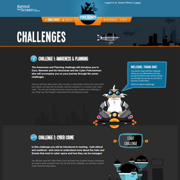The Cyber City project is a new interactive resource that enable students to progress through seven challenges, collecting belts as they go, to foil the evil machinations of Nemesis and his Henchman and prevent them breaching the security of Cyber City School. Supported by infographics, games, comic books and audio guides, the challenges introduce core principles of cyber security including awareness and planning; cyber crime and computer forensics; security practices and principles; safety, privacy and ethics; and online interaction.