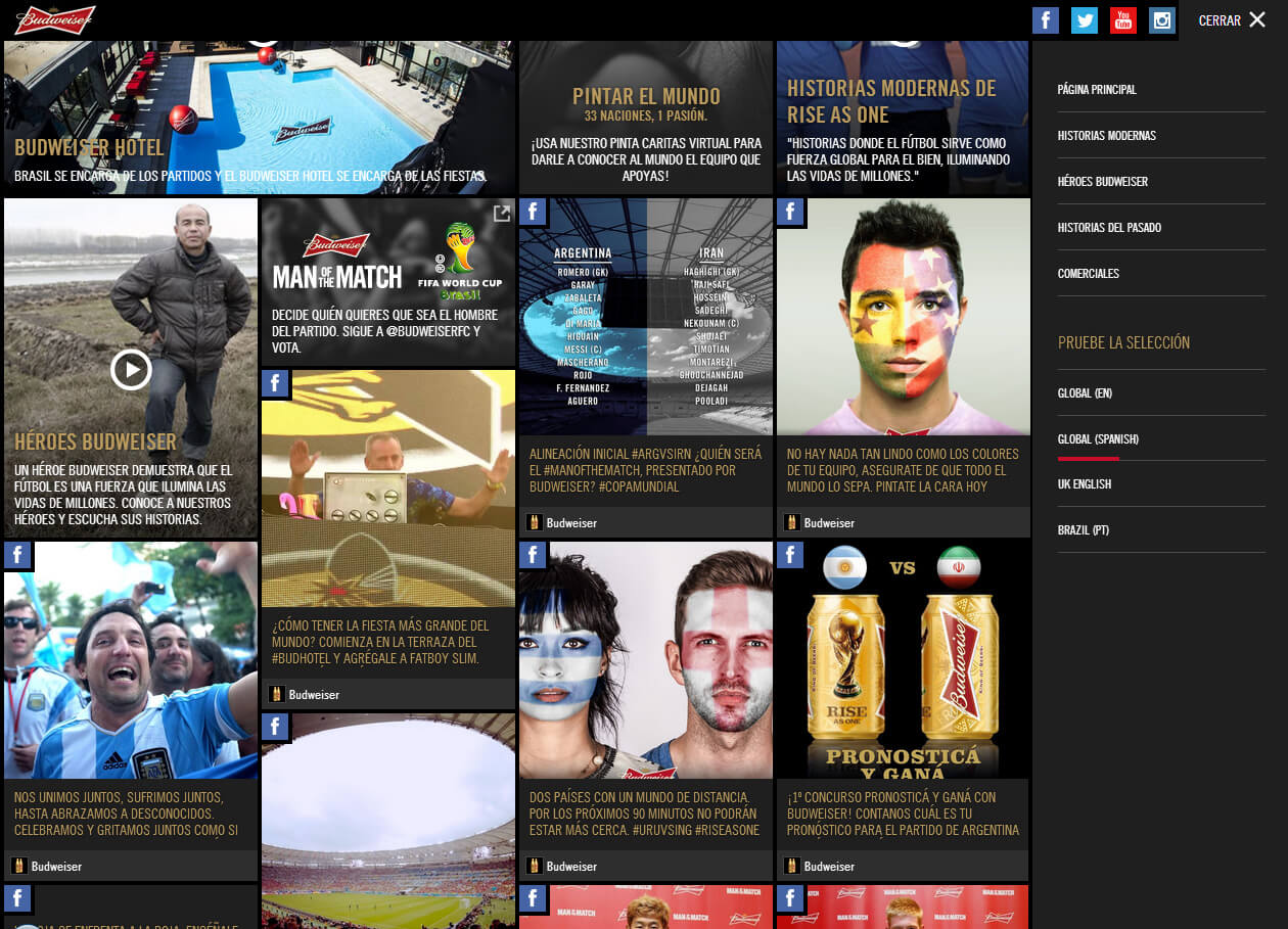This final phase of the The Rise as One campaign's site, in the lead-up and over the World Cup, site is a mash-up of YouTube, Facebook, Twitter and user generated content in a portal-style environment.