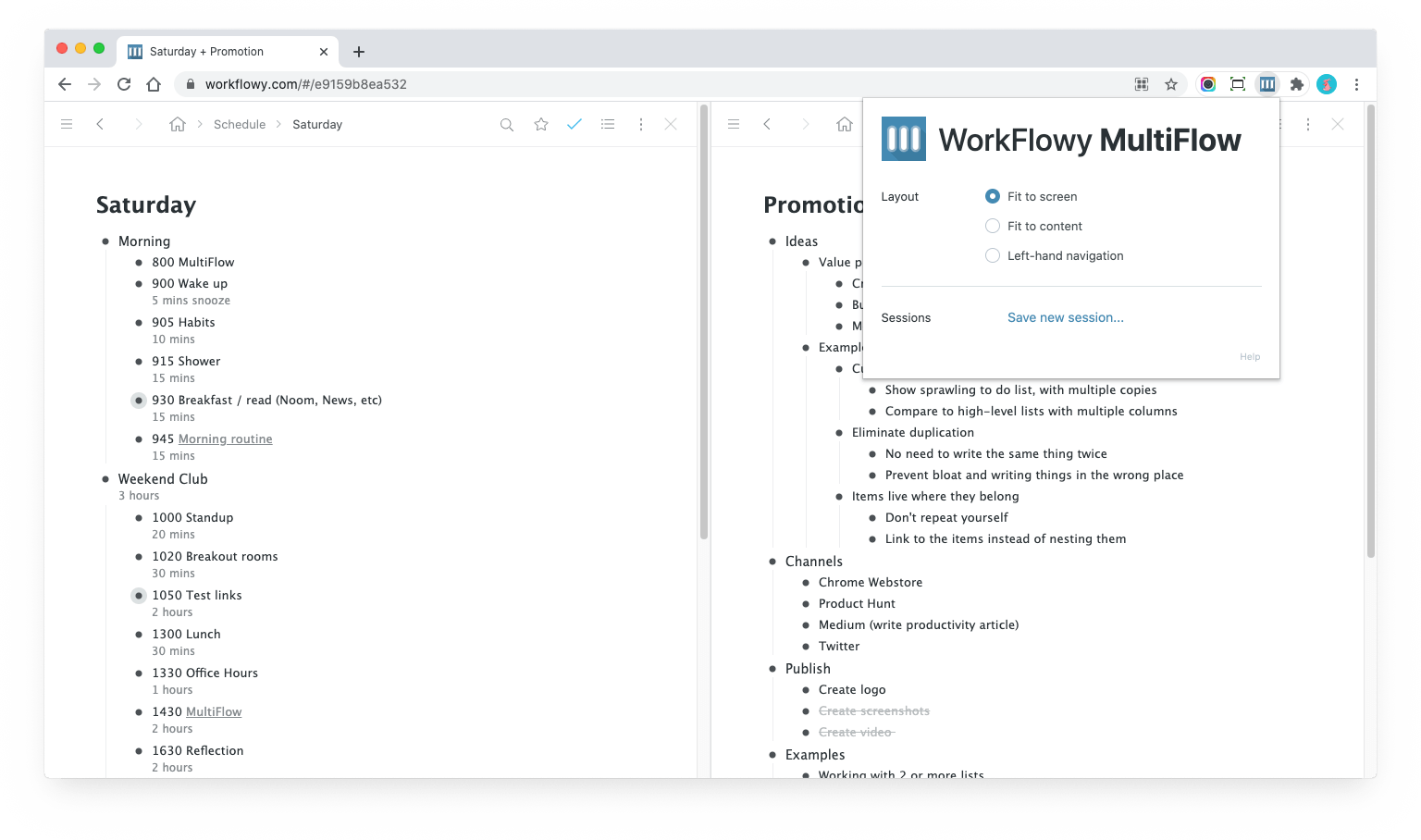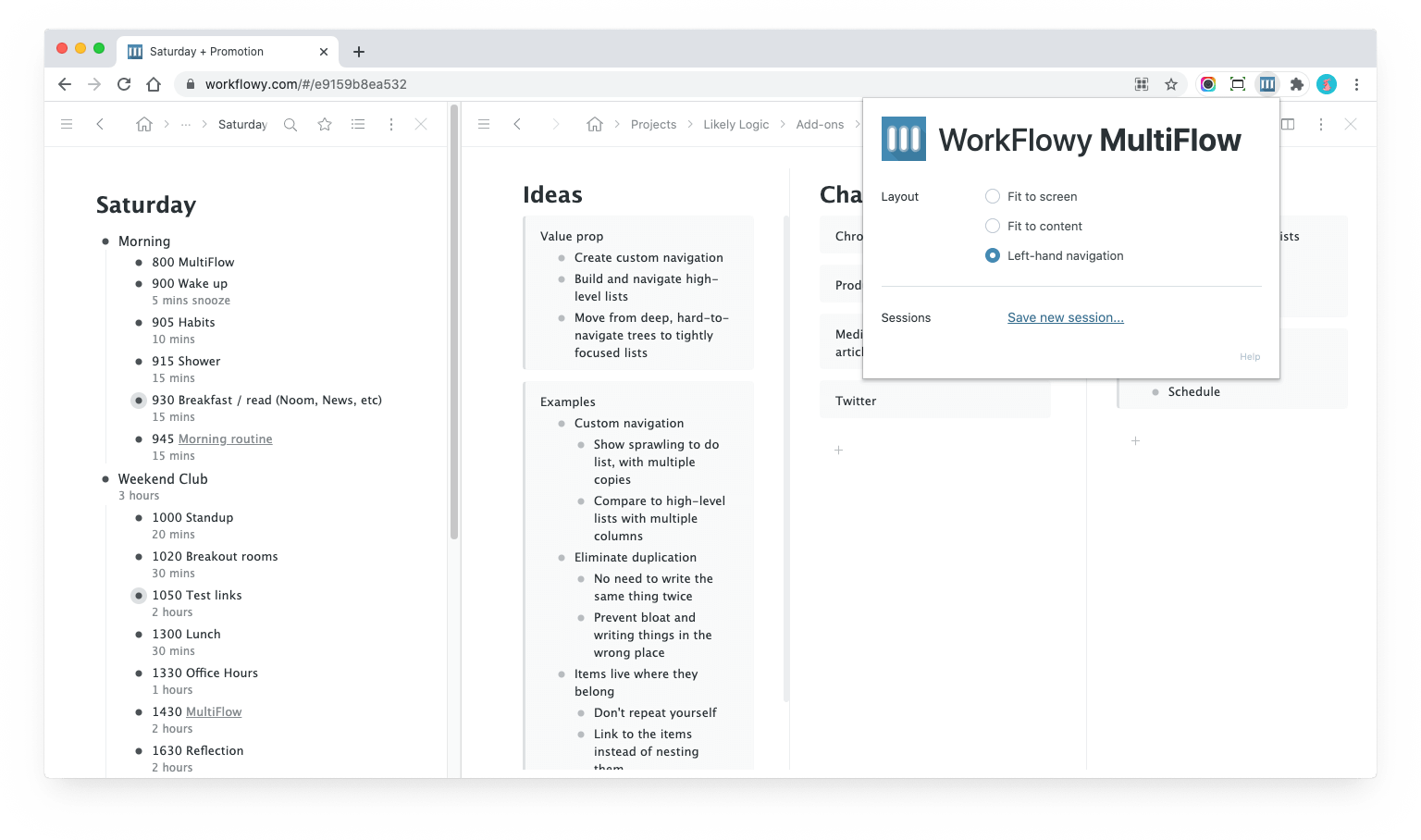 WorkFlowy MultiFlow adds a multi-column view to WorkFlowy.